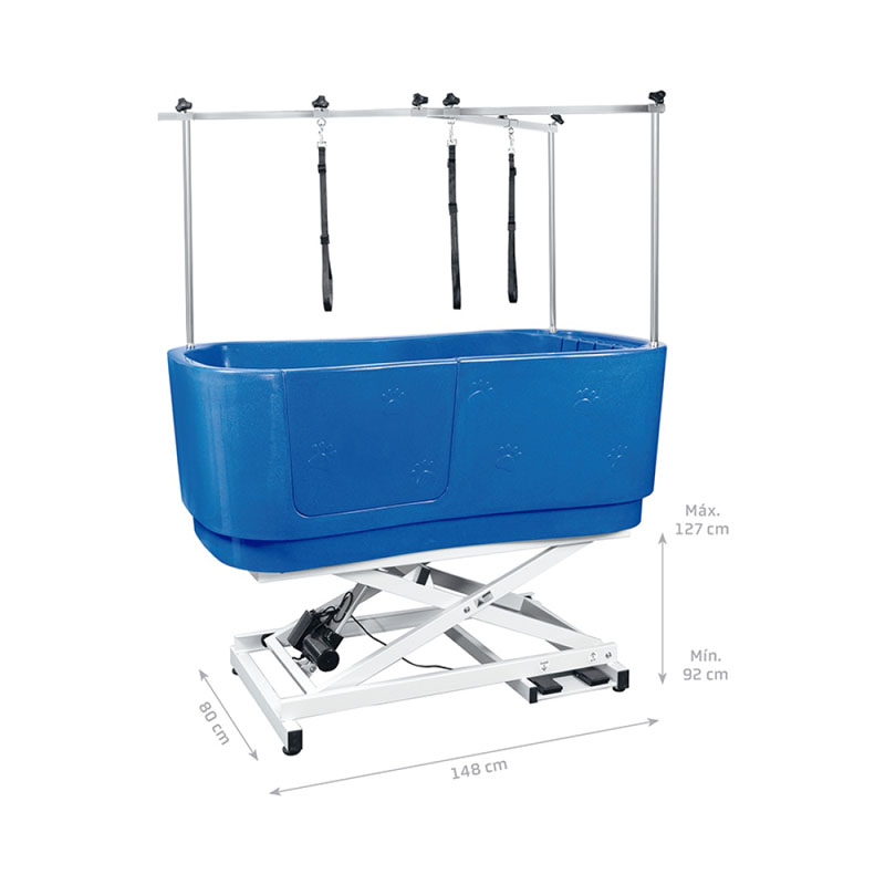 எலெக்ட்ரிக் ப்ளூ க்ரூமிங் பாத்டப் பொருத்தப்பட்ட எலக்ட்ரிக் லிஃப்டிங் சிஸ்டம் ஒரு உயர்தர மோட்டாரை ஏற்றுக்கொள்கிறது, இது குறைந்த சத்தத்துடன் நிலையானதாக உயர்த்துகிறது மற்றும் குறைக்கிறது. வெவ்வேறு உயரங்களைக் கொண்ட க்ரூமர்களின் செயல்பாட்டுத் தேவைகளைப் பூர்த்தி செய்ய இது 36.22 இன்ச் முதல் 50 இன்ச் வரை உயரத்தை நெகிழ்வாகச் சரிசெய்யும். மோட்டார் நீண்ட கால ஆயுள் சோதனைகளுக்கு உட்பட்டுள்ளது, நீண்ட சேவை வாழ்க்கை மற்றும் குறைந்த தோல்வி விகிதம். பயன்பாட்டின் போது பாதுகாப்பை உறுதி செய்வதற்காக இது அதிக சுமை பாதுகாப்பு செயல்பாடுடன் பொருத்தப்பட்டுள்ளது.