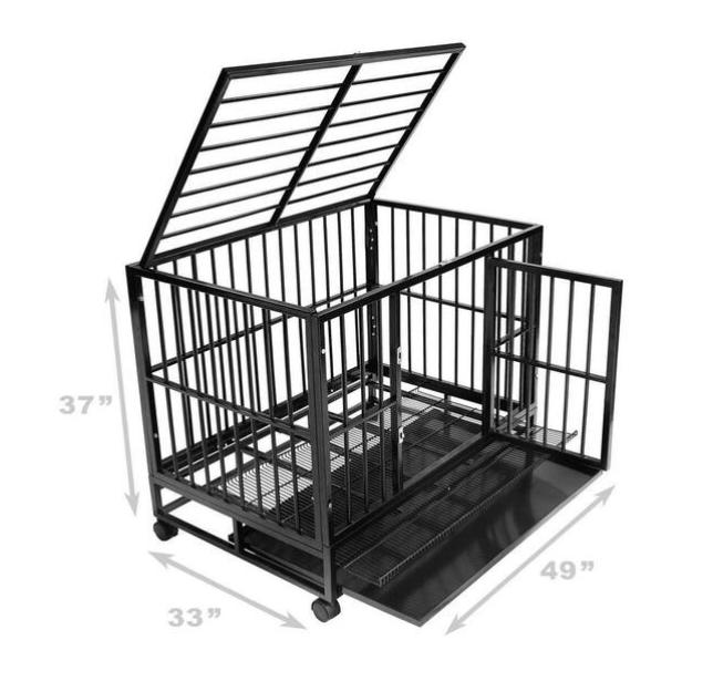 பிரீமியம் கட்டுமானம்: வணிக-தர எஃகு மூலம் வடிவமைக்கப்பட்ட ஒரு கனமான, வலுவான பெட் க்ரேட், செல்லப்பிராணிகளின் பாதுகாப்பு, ஆறுதல் மற்றும் நீடித்த ஆயுள் ஆகியவற்றை உறுதிப்படுத்த தொழில் ரீதியாக வடிவமைக்கப்பட்டுள்ளது. கூண்டில் 1/2-இன்ச் விட்டம் (20-கேஜ்) வெல்டட் செய்யப்பட்ட எஃகு குழாய்களுடன் வலுவூட்டப்பட்ட 3/4-இன்ச் சட்டகம், மேலிருந்து கீழாக விரிவான வலிமை மற்றும் நீடித்துழைப்பை வழங்குகிறது.