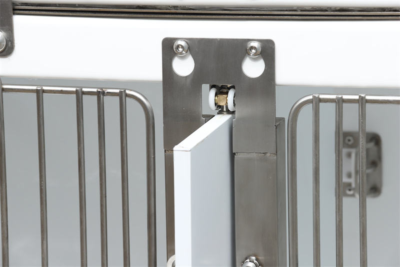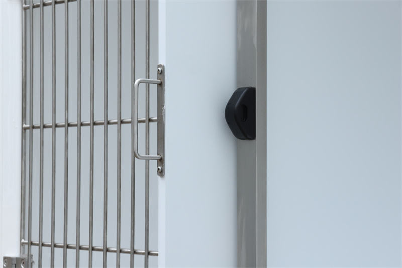 டூயல் பாயிண்ட் ஆட்டோமேட்டிக் லாக்கிங் கதவுகளை தரநிலையாகக் கொண்டுள்ளது, செங்குத்து பார்கள் மற்றும் லாக்கிங் ஹோல்களுக்கு இடையே உள்ள குறைந்தபட்ச இடைவெளி, செல்லப் பிராணிகள் கதவு பேனலை லேசாகத் தொட்டாலும் அமைதியாகச் செயல்படுவதை உறுதி செய்கிறது. 8 மிமீ விட்டம் கொண்ட சட்டகம், 6 மிமீ செங்குத்து கம்பிகள் மற்றும் 8 மிமீ குறுக்கு பட்டைகள் கூட்டாக பாதுகாப்பான மற்றும் உறுதியான கூண்டு அமைப்பை உருவாக்குகின்றன.