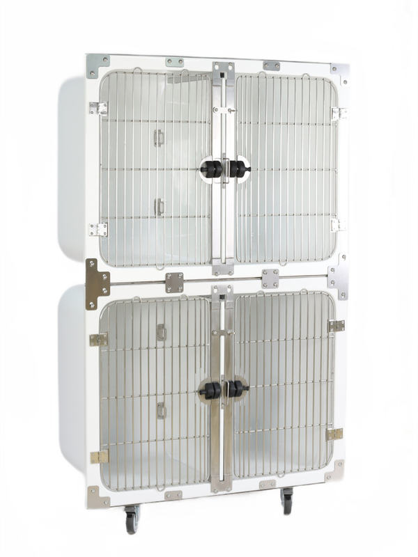 வலுவான கீல்கள் பொருத்தப்பட்ட அகற்றக்கூடிய முன் கதவு ஒரு வெளிப்படையான அக்ரிலிக் கதவு மூலம் மாற்றப்பட்டு, கூண்டை ஆக்ஸிஜன் சிகிச்சை நிலையமாக மாற்றலாம்.